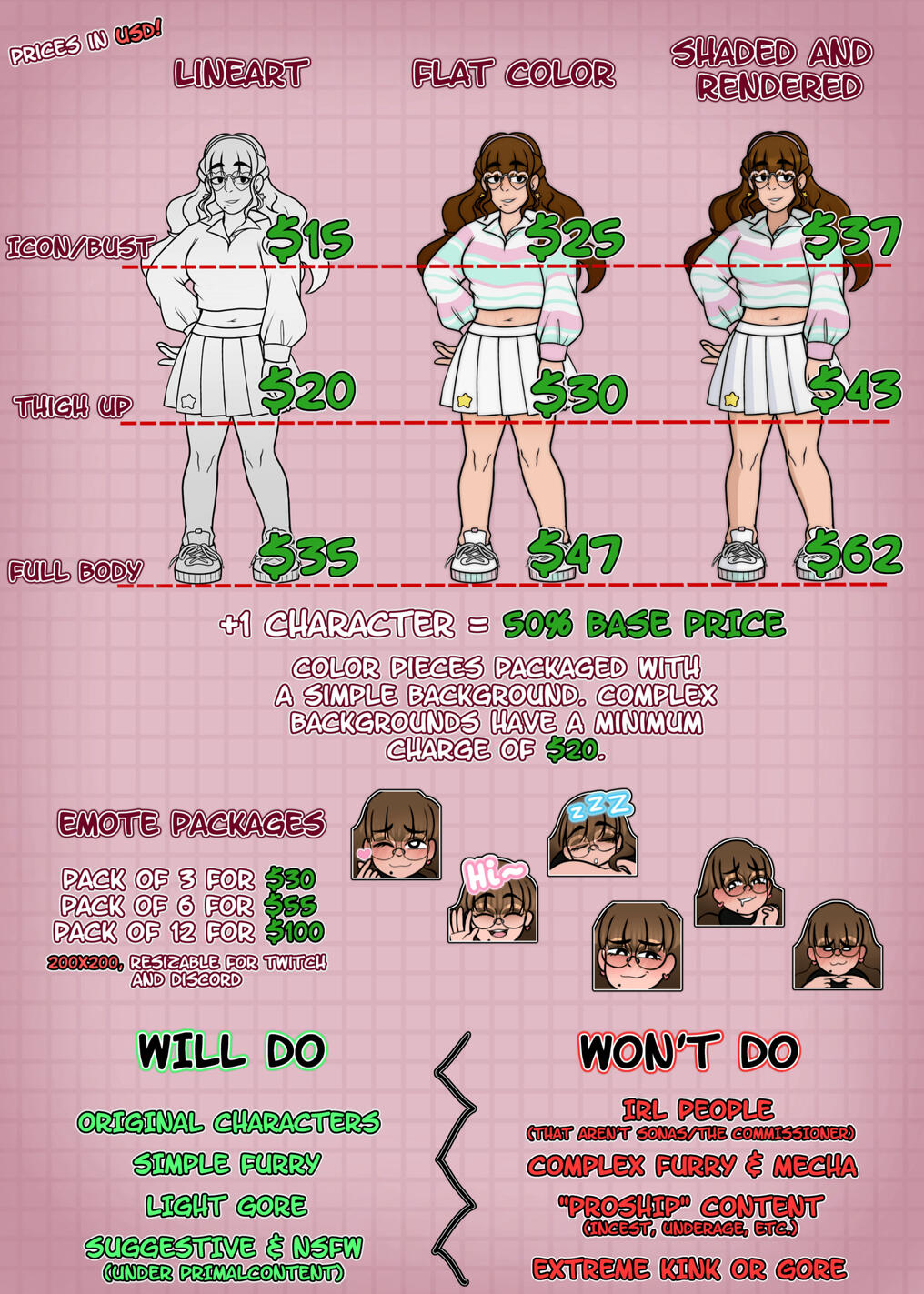 Once work beyond the sketch has been approved and begun, the commission becomes NON-REFUNDABLE. Due to the highly communicative nature of commission work, refunds are not permittable after work has been put in, and the artist already reserves the right to cancel or refuse the commission before the point of non-refundability for reasons such as poor communication or disagreeable terms. Customers must agree to this policy when commissioning PRIMARVELOUS.COMMISSION LENGTH AND INPUT